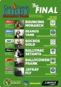Six incredible greyhounds will go to traps on Saturday night but who will you be cheering on to take home the €80,000 winner’s prize in the 2026 Con and Annie Kirby Memorial?